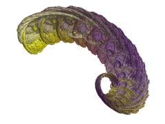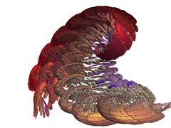 Too easy? Wait a moment: ChaosPro restricts you not only to simple zoom in/out/around movies, it lets you create animations based upon every fractal parameter in ChaosPro, in every combination. You simply define key frames of how your animation should look like, specify how many frames there should be between each pair of key frames and ChaosPro does the rest. The key frames may differ in any parameter which can be changed in a continuously manner, like the corners, the iteration value, the rotation angle, the parameter, the bailout value, the coloring paramaters, the palette and many others. Parameters which cannot change during an animation are the fractal type or flags for example: These must be the same during the animation. But the animation system is clever enough to not let you specify keyframes which do not match to the others you already have defined. So, are you interested in an animation flying into a Complex Newton Set, which keeps rotating, whereas the palette changes, just in order to fly around a bit and finally to fly back to the starting location animating the initialization point? And together with the 3D feature you additionally can animate all 3D parameters... |